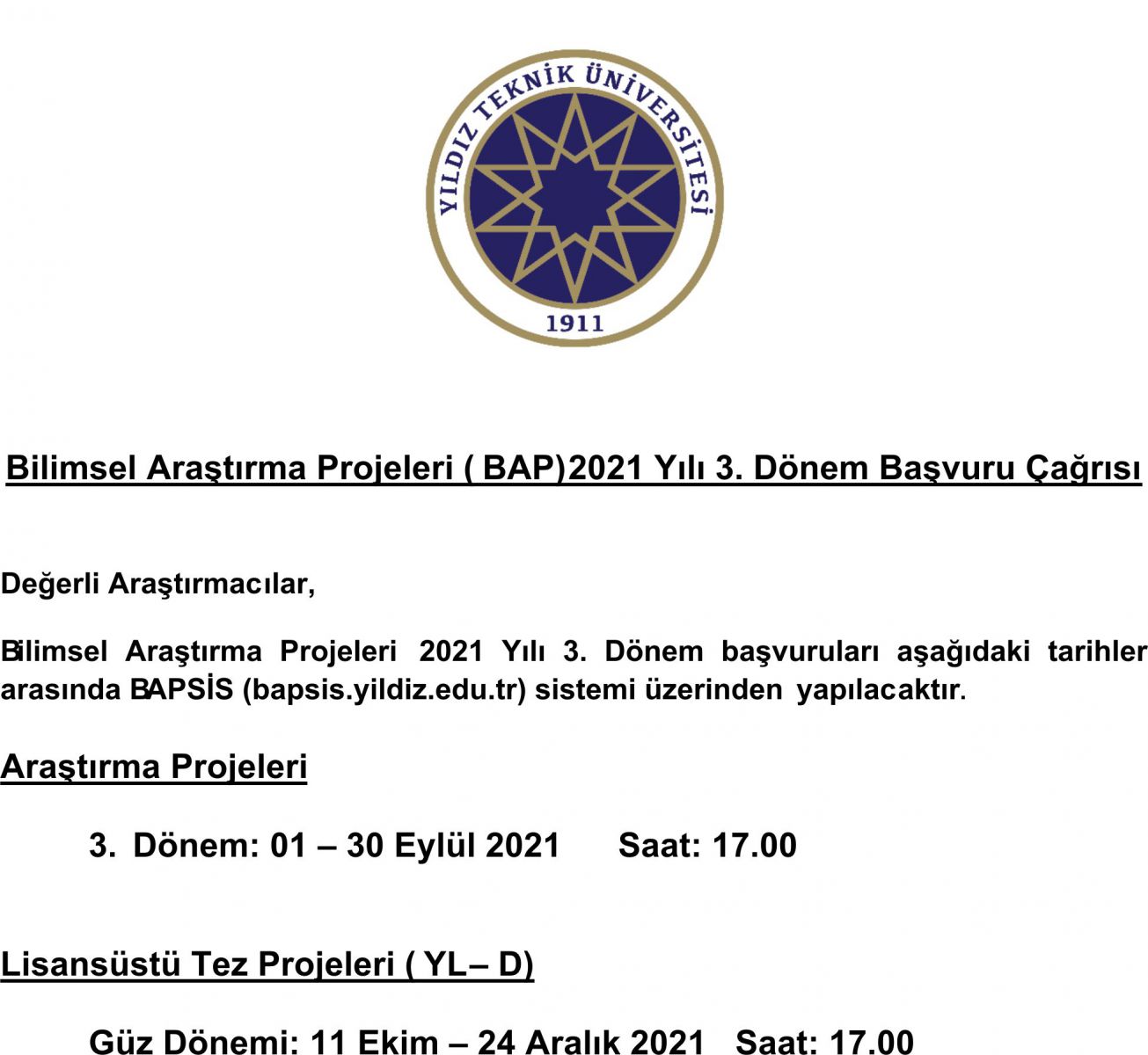 Bilimsel Araştırma Projeleri (BAP) 2021 Yılı 3. Dönem Başvuru Çağrısı