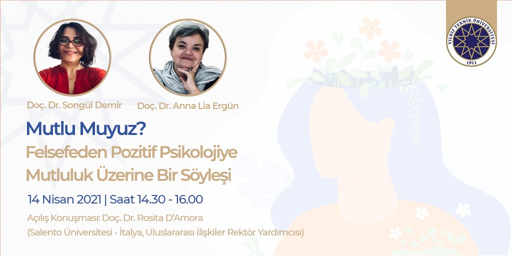 Fen-Edebiyat Fakültesi Akademik ve Kültürel Etkinlikleri kapsamında İnsan ve Toplum Bilimleri Bölümü ile Batı Dilleri ve Edebiyatları Bölümü tarafından ''Mutlu Muyuz? Felsefeden Pozitif Psikolojiye Mutluluk Üzerine Bir Söyleşi'' konulu bir çevrimiçi söyleşi gerçekleştirilecektir.